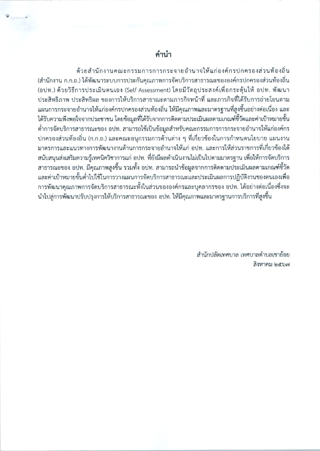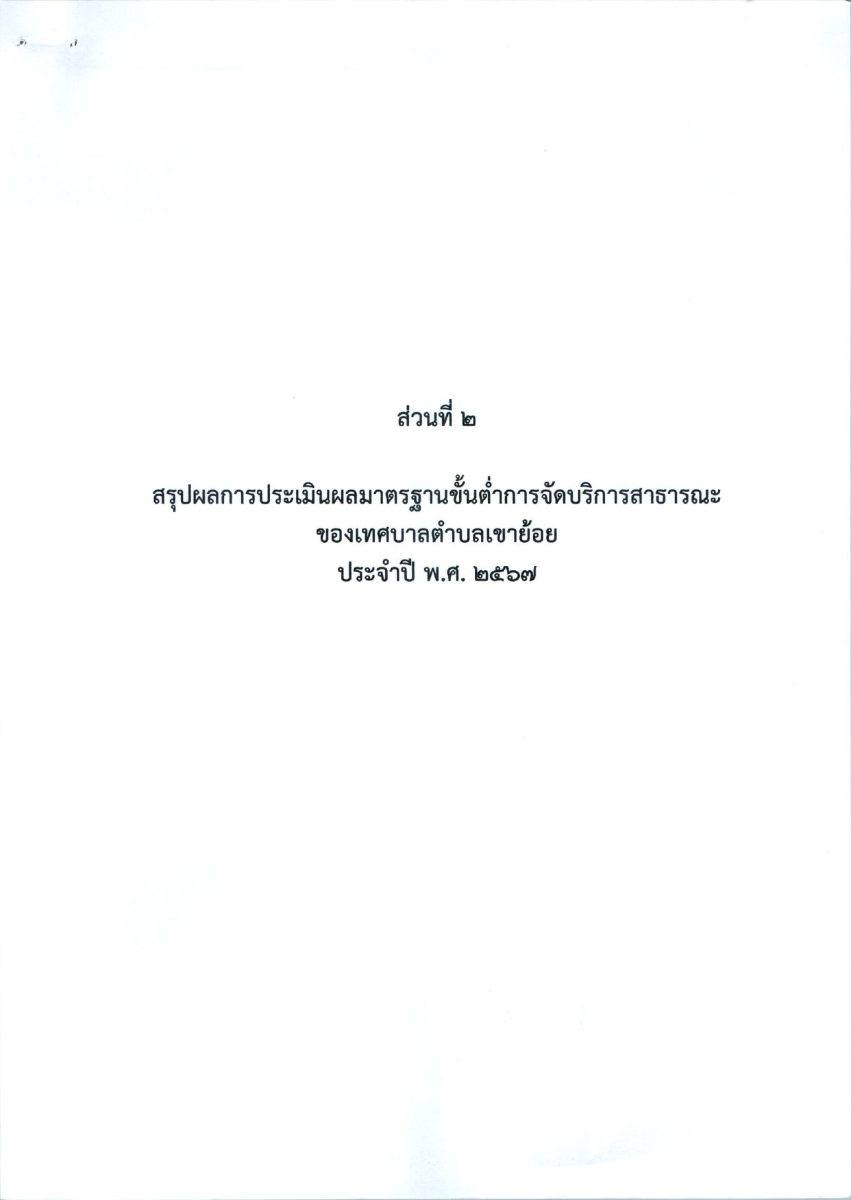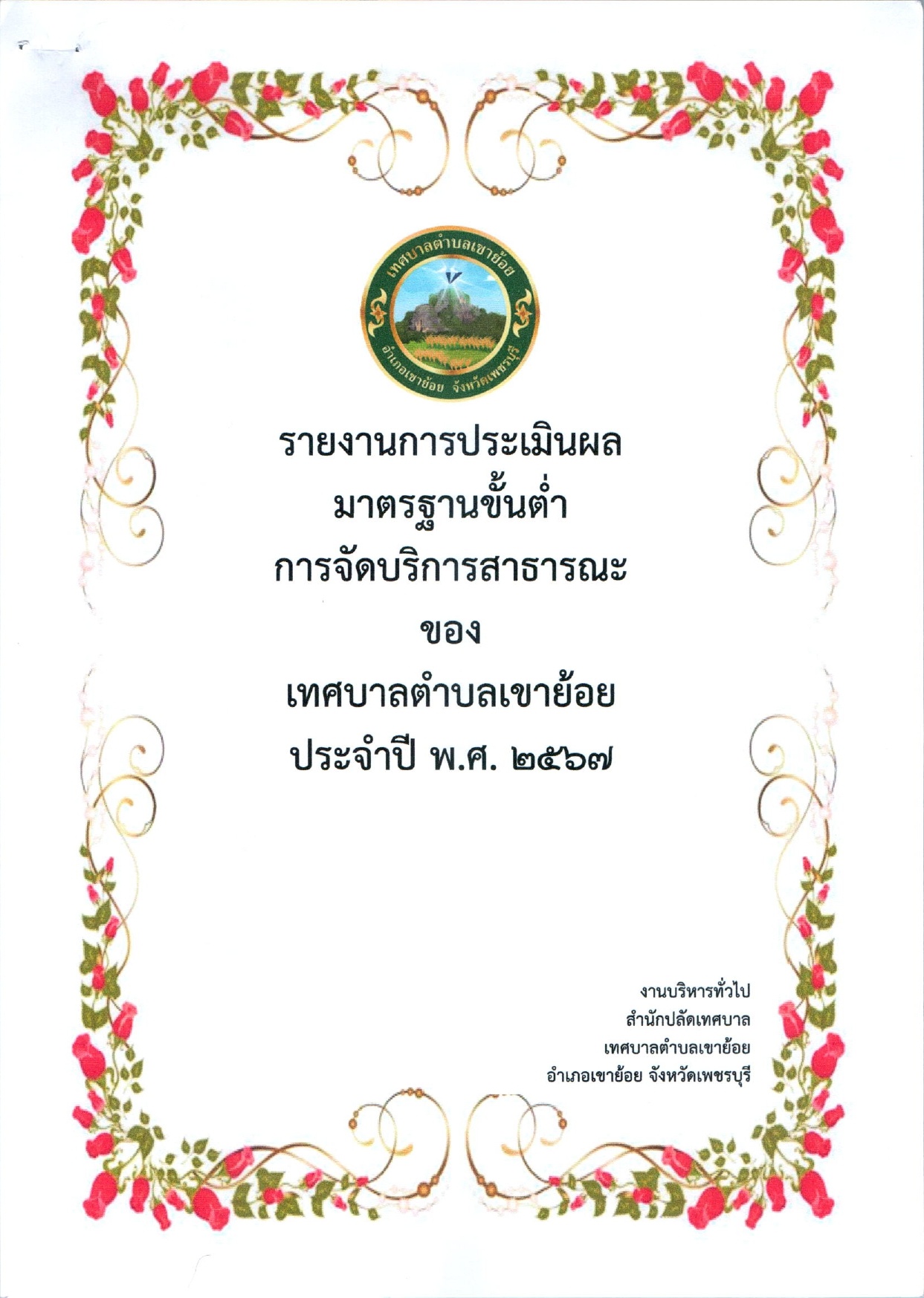 ประกาศเทศบาลตำบลเขาย้อย เรื่อง รายงานผลการประเมินมาตรฐานขั้นต่ำการจัดบริการสาธารณะของเทศบาลตำบลเขาย้อย ประจำปี พ.ศ.2567