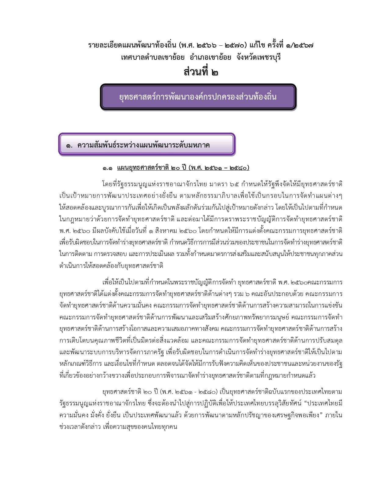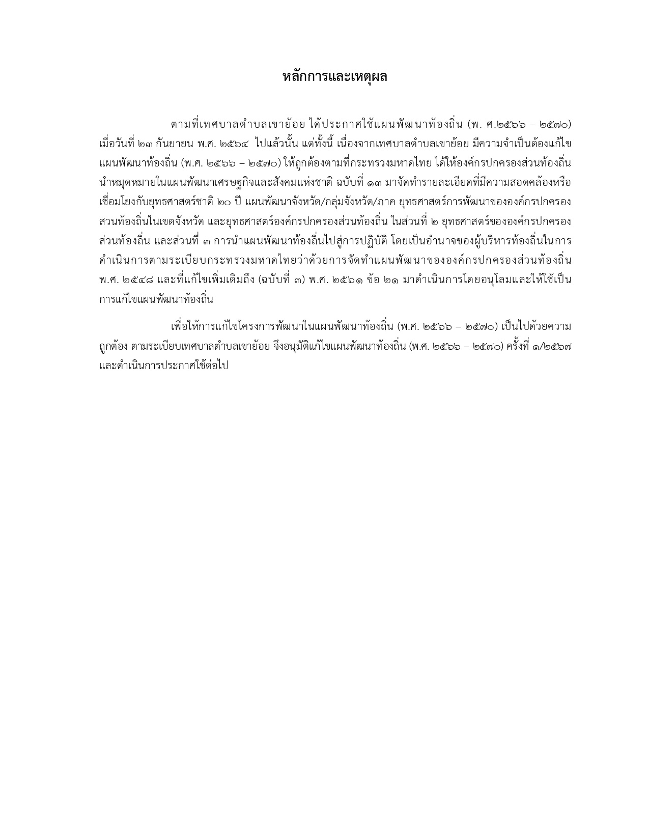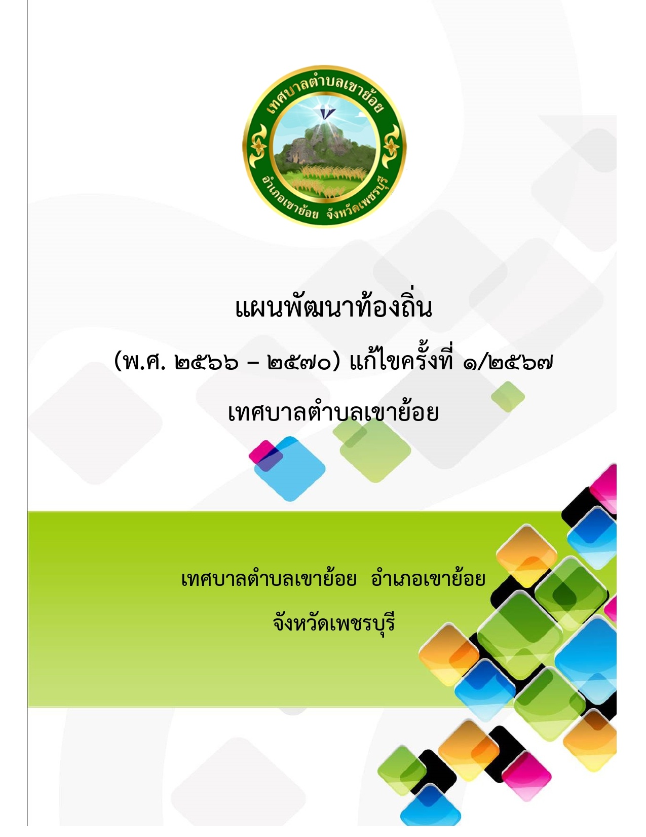 ประกาศใช้แผนพัฒนาท้องถิ่น (พ.ศ. ๒๕๖๖ - ๒๕๗๐) แก้ไขครั้งที่ ๑/๒๕๖๗ เทศบาลตำบลเขาย้อย