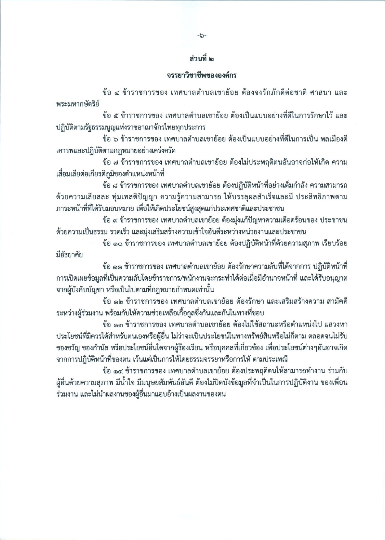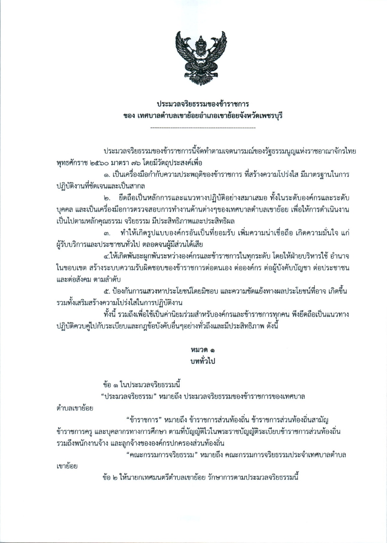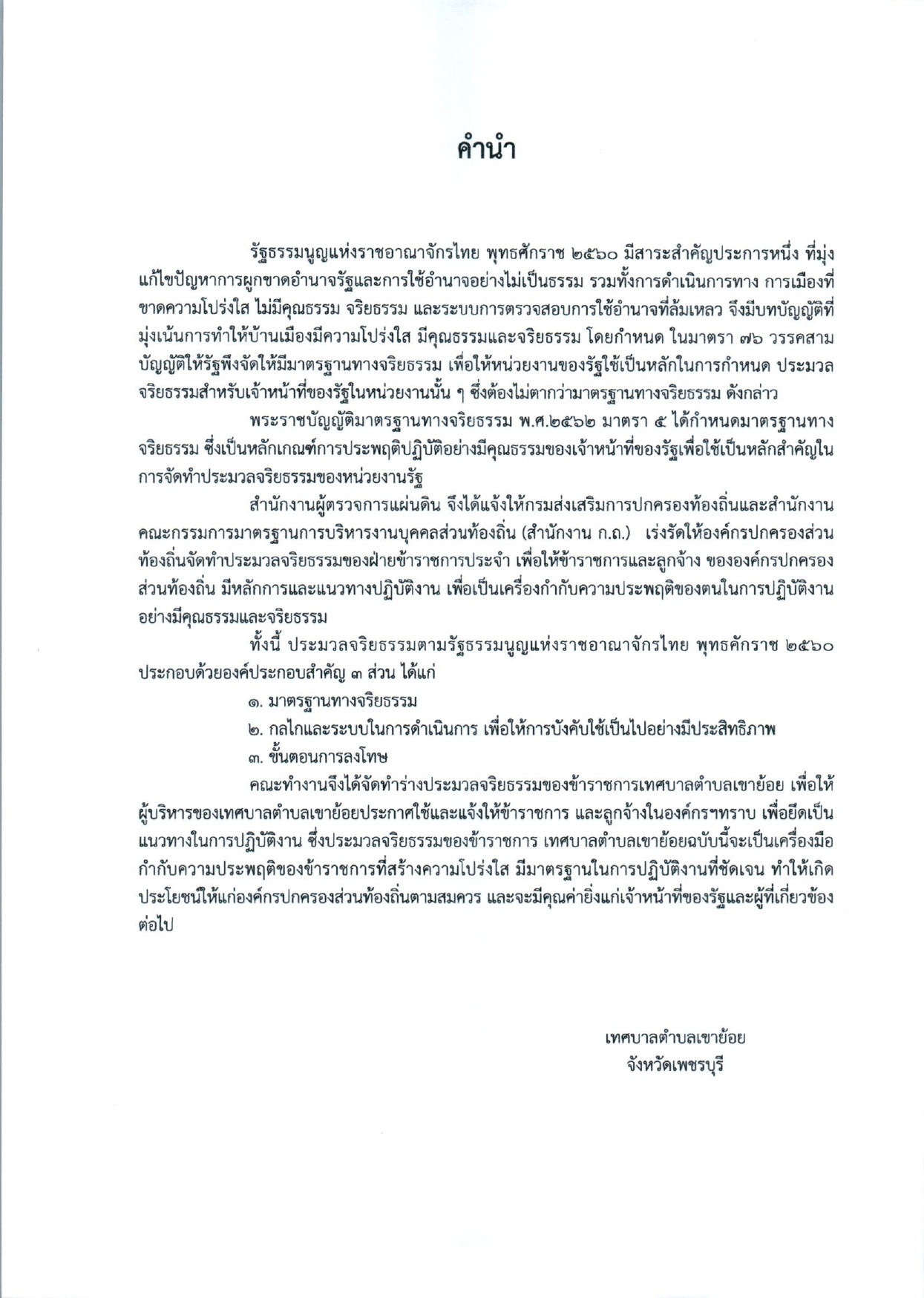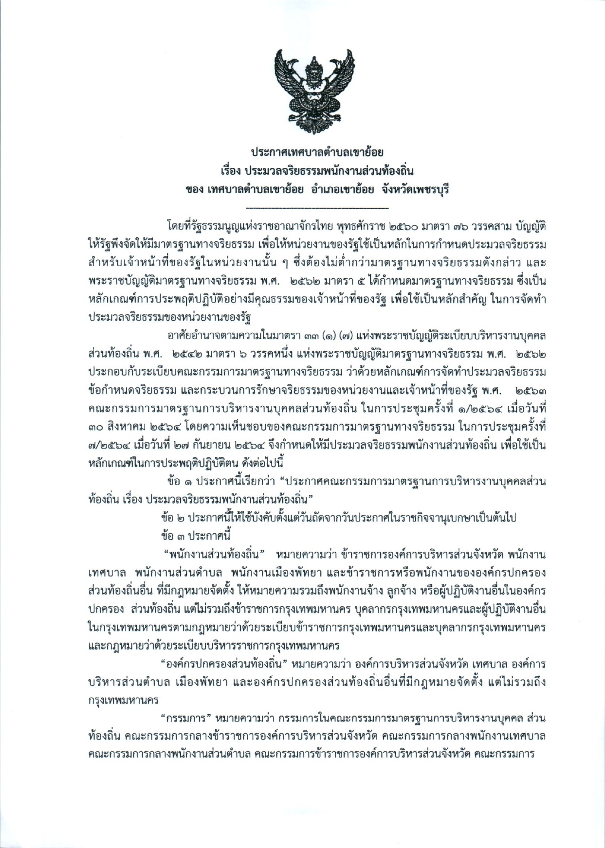 ประมวลจริยธรรมของข้าราชการ เทศบาลตำบลเขาย้อย อำเภอเขาย้อย จังหวัดเพชรบุรี