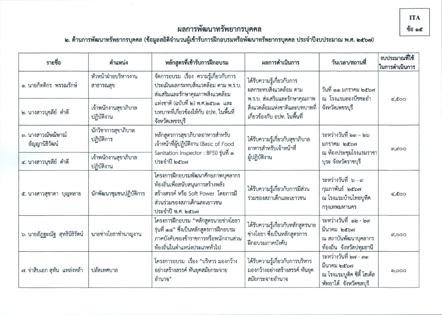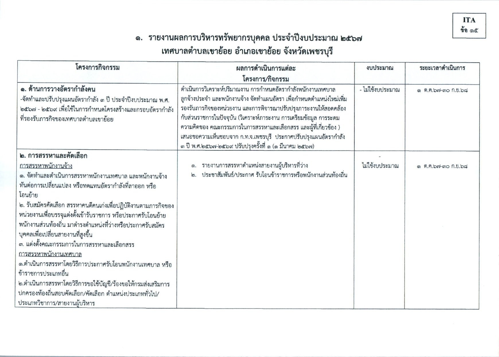 รายงานผลการบริหารทรัพยากรบุคคล ประจำปีงบประมาณ 2567 เทศบาลตำบลเขาย้อย อำเภอเขาย้อย จังหวัดเพชรบุรี