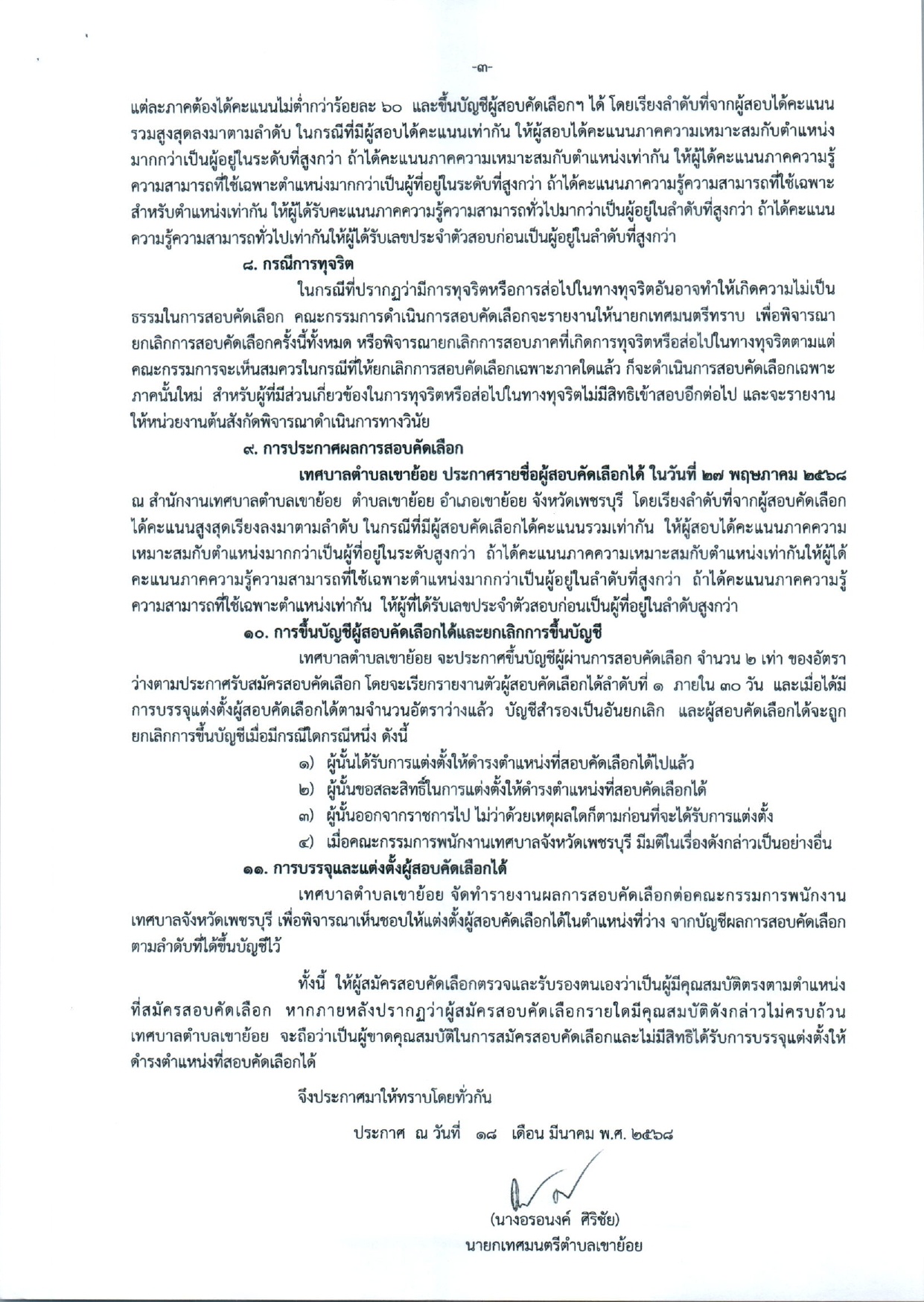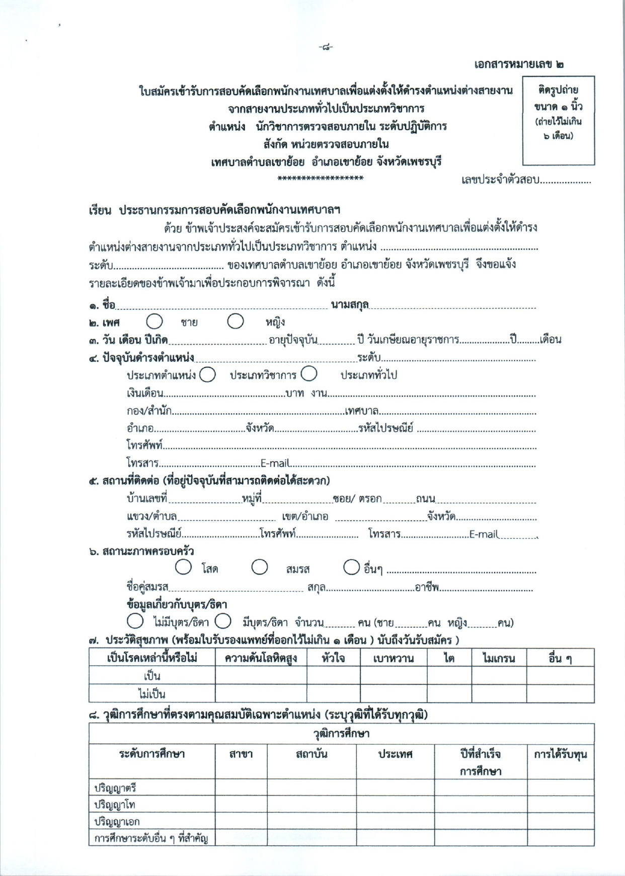 ประกาศเทศบาลตำบลเขาย้อย เรื่อง การรับสมัครสอบคัดเลือกพนักงานเทศบาลเพื่อแต่งตั้งให้ดำรงตำแหน่งต่างสายงาน จากประเภททั่วไปเป็นประเภทวิชาการ