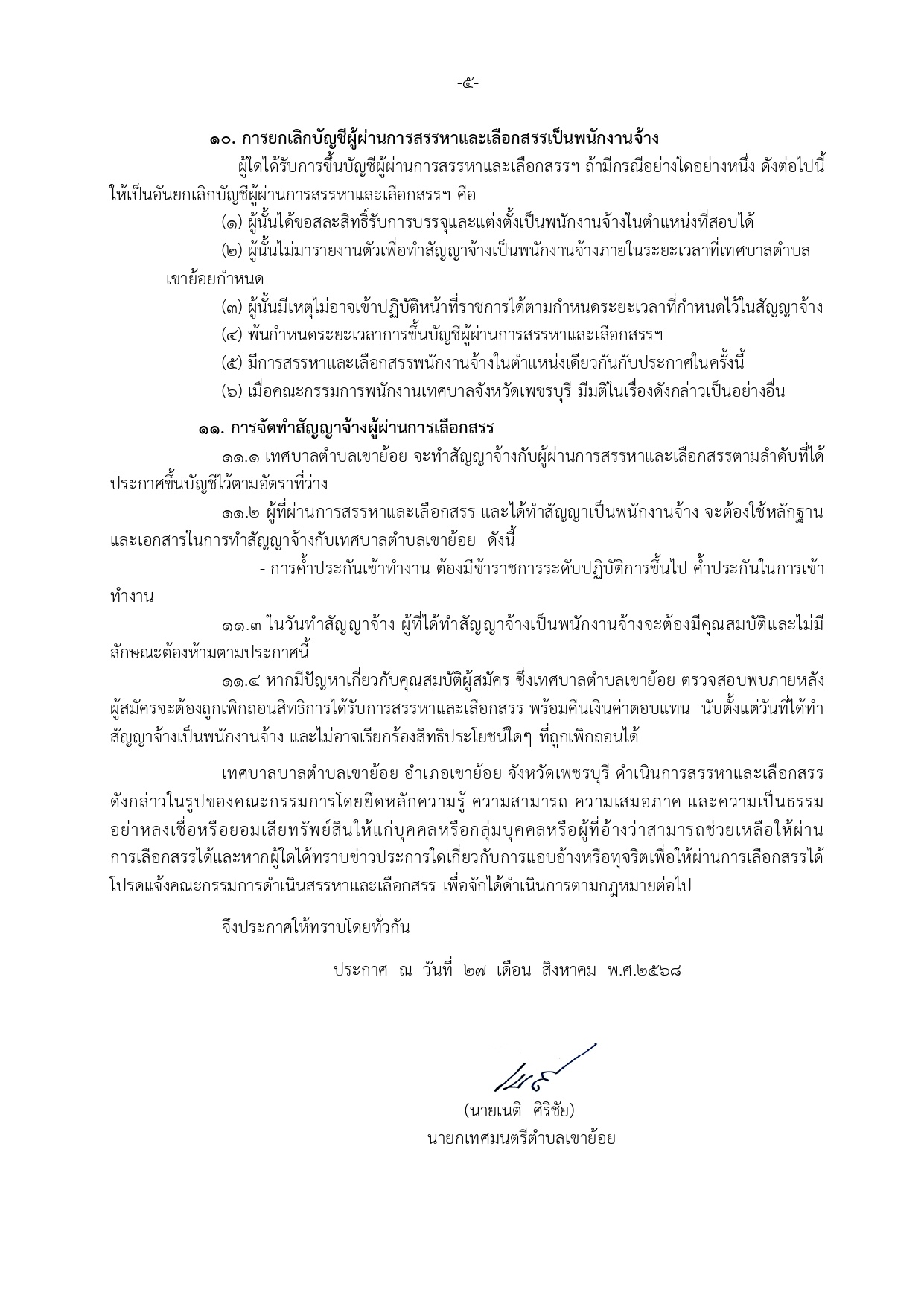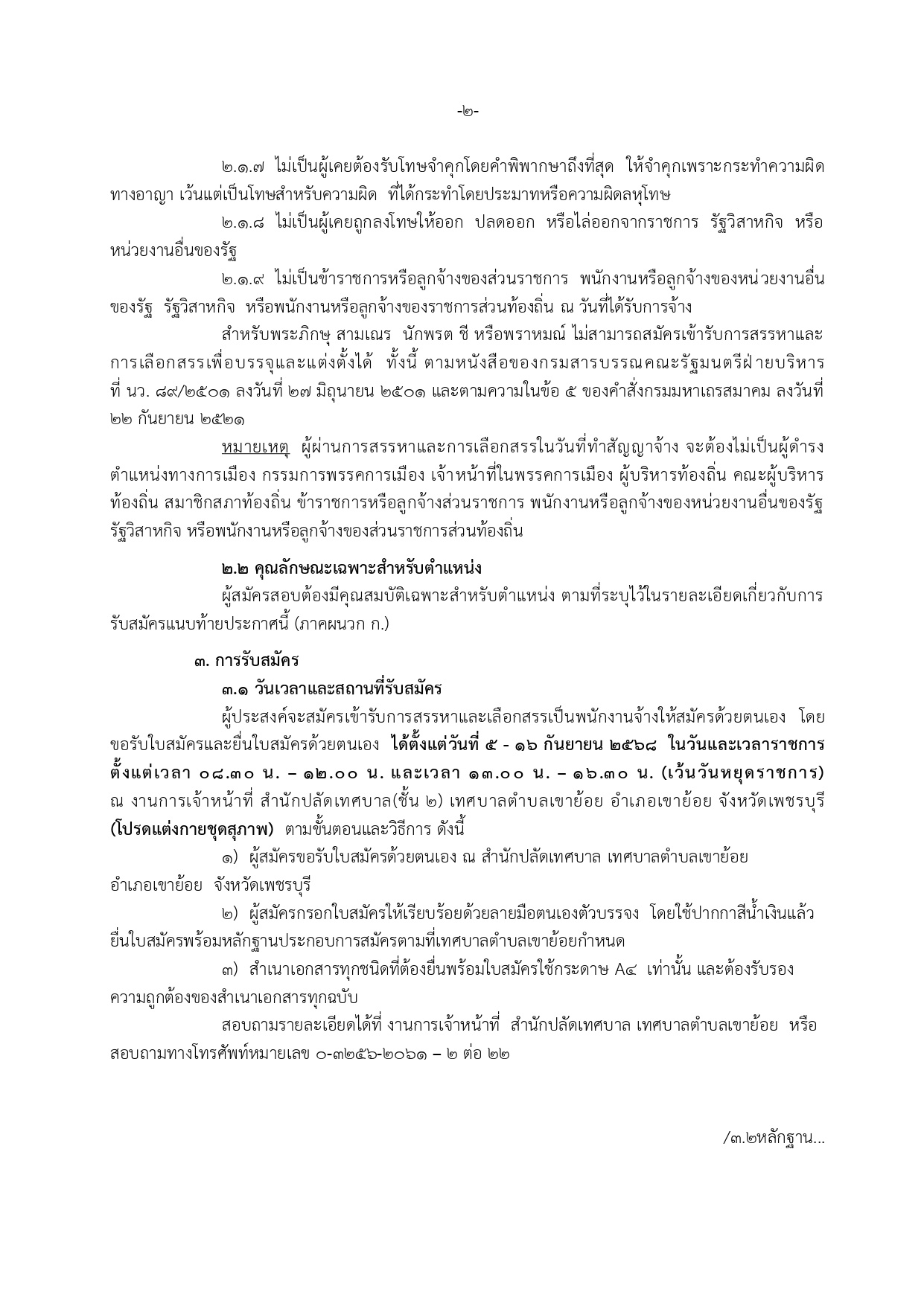 ประกาศเทศบาลตำบลเขาย้อย เรื่อง การรับสมัครบุคคลเพื่อสรรหาและเลือกสรรเป็นพนักงานจ้าง ของเทศบาลตำบลเขาย้อย ระจำปีงบประมาณ 2568 (ครั้งที่ 2)