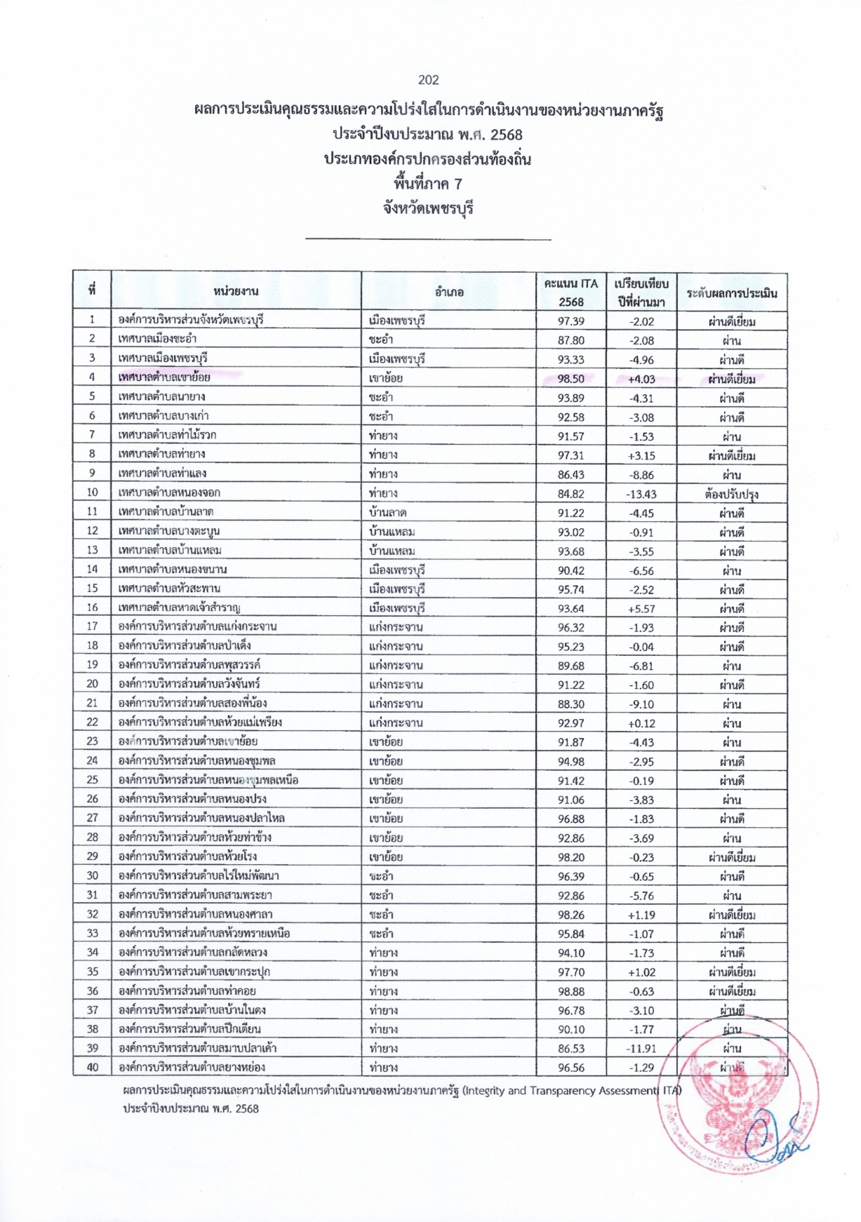 ประกาศสำนักงานคณะกรรมการป้องกันและปราบปรามการทุจริตแห่งชาติ เรื่อง ผลการประเมินคุณธรรมและความโปร่งใสในการดำเนินงานของหน่วยงานภาครัฐ (Integrity and Transparency Assessment: ITA) ประจำปิ๊งบประมาณ พ.ศ. 2568