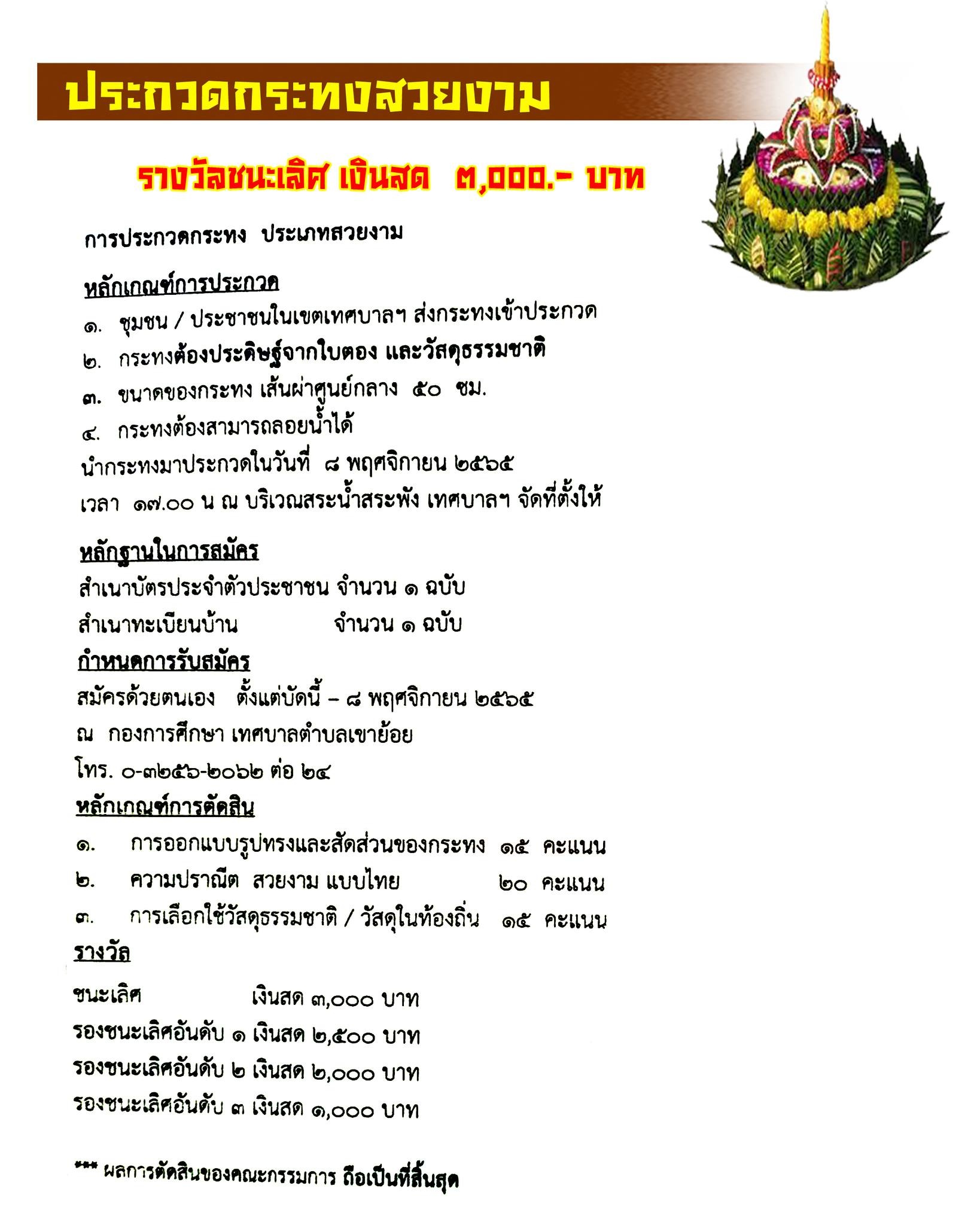 เชิญร่วมงานประเพณีลอยกระทง สระน้ำประวัติศาสตร์ สระพัง