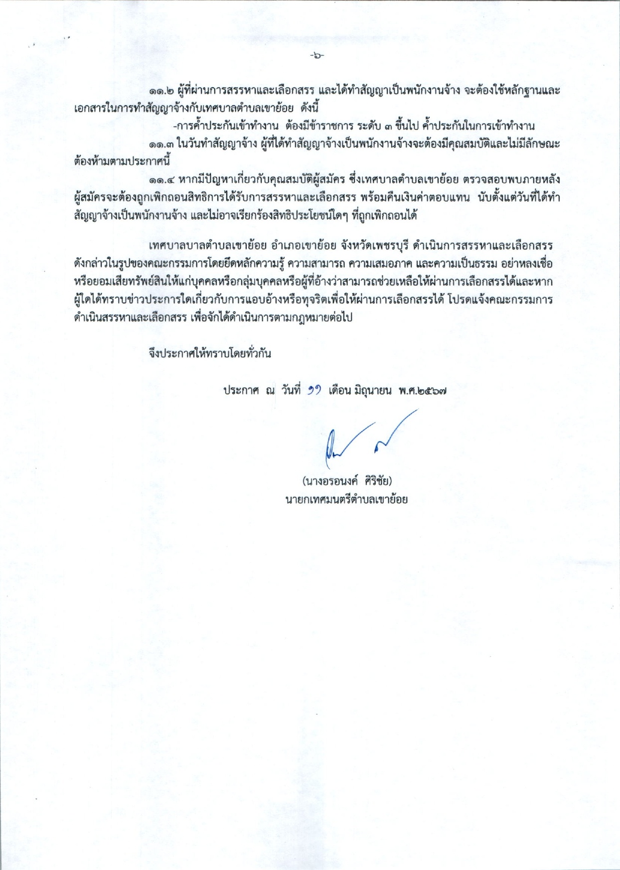 ข่าวประชาสัมพันธืจากเทสบาลตำบลเขาย้อย เรื่อง การรับสมัครบุคคลเพื่อสรรหาและเลือกสรรเป็นพนักงานจ้างของเทศบาลตำบลเขาย้อย ปีงบประมาณ 2567 ครั้งที่ 2