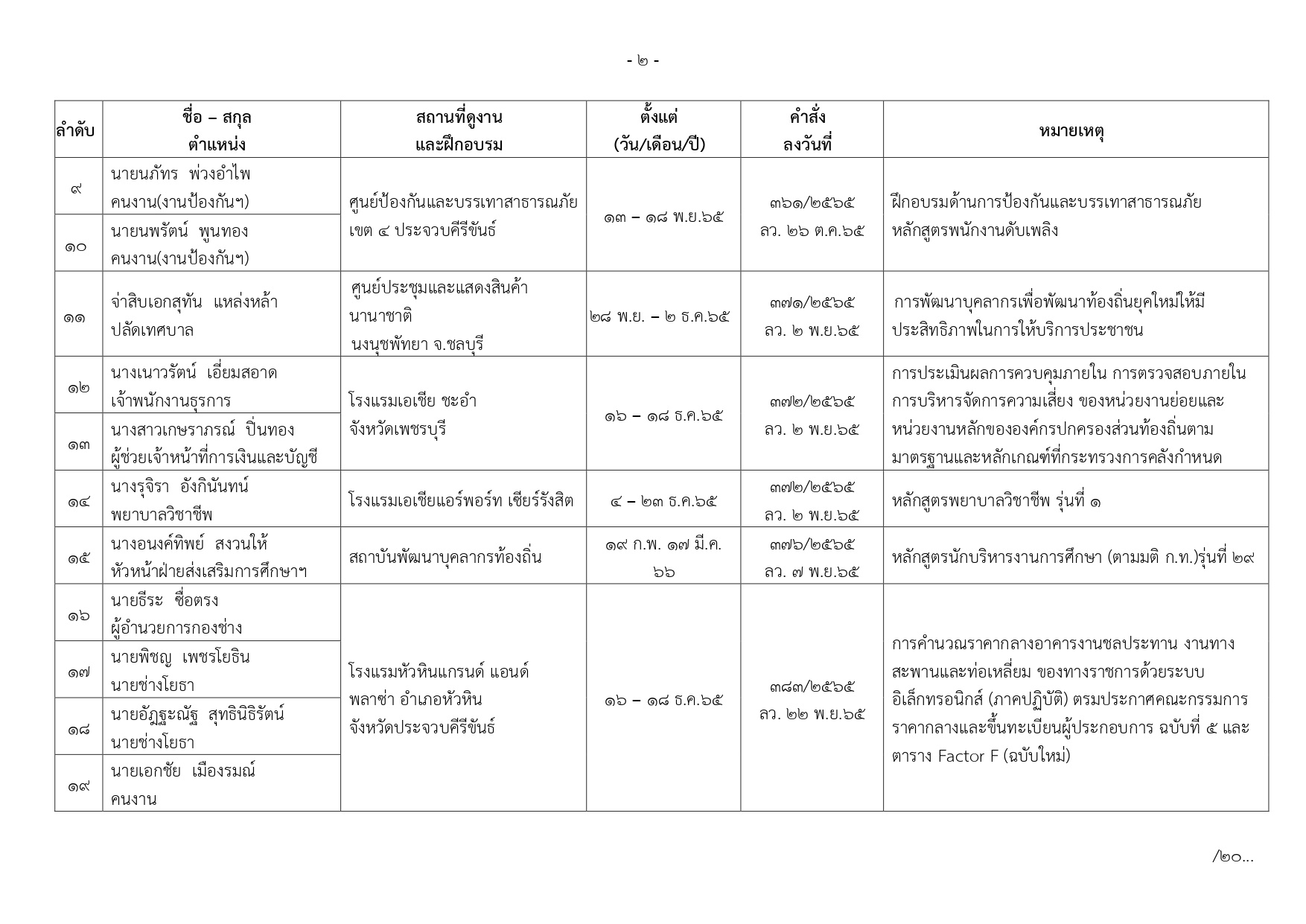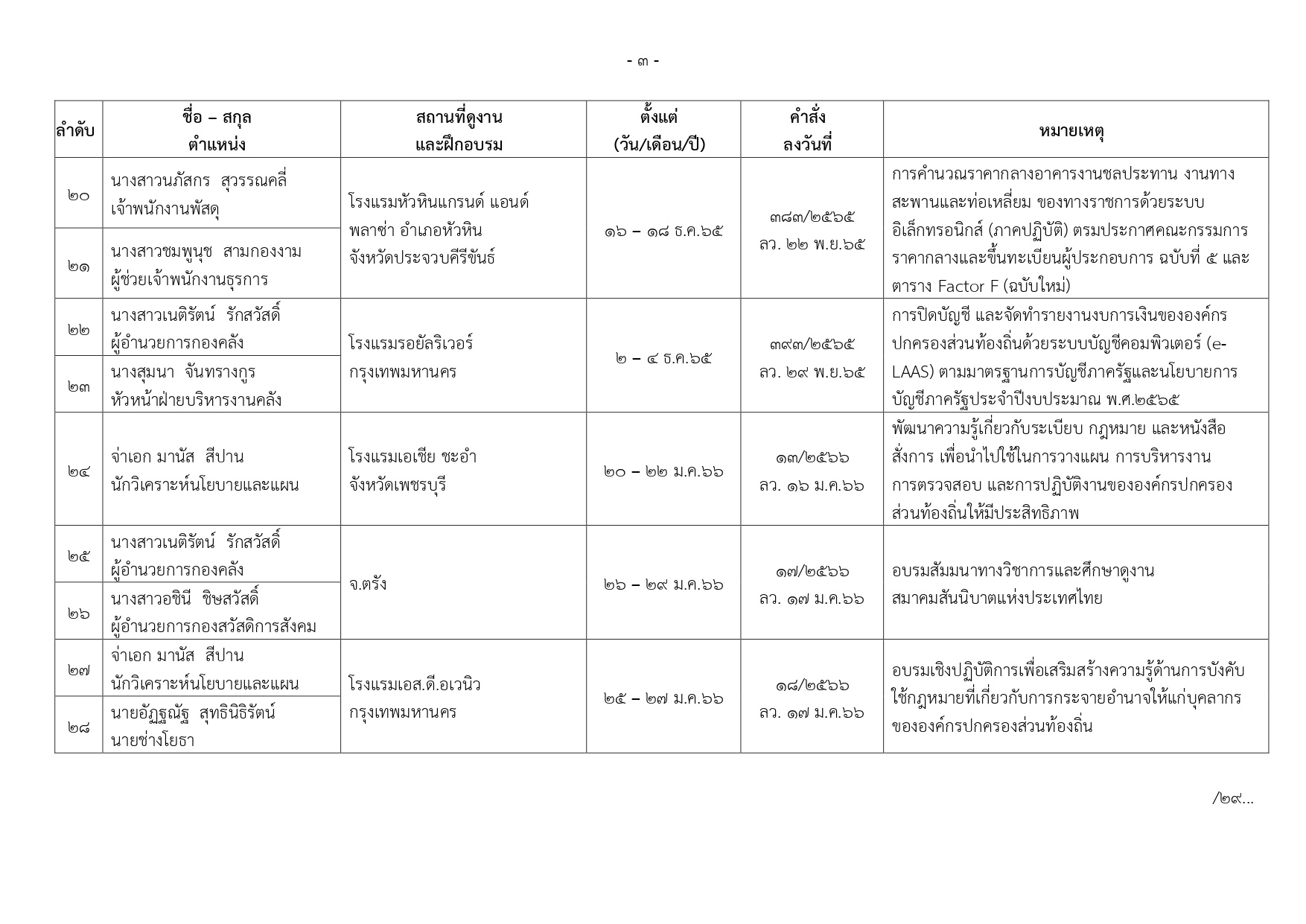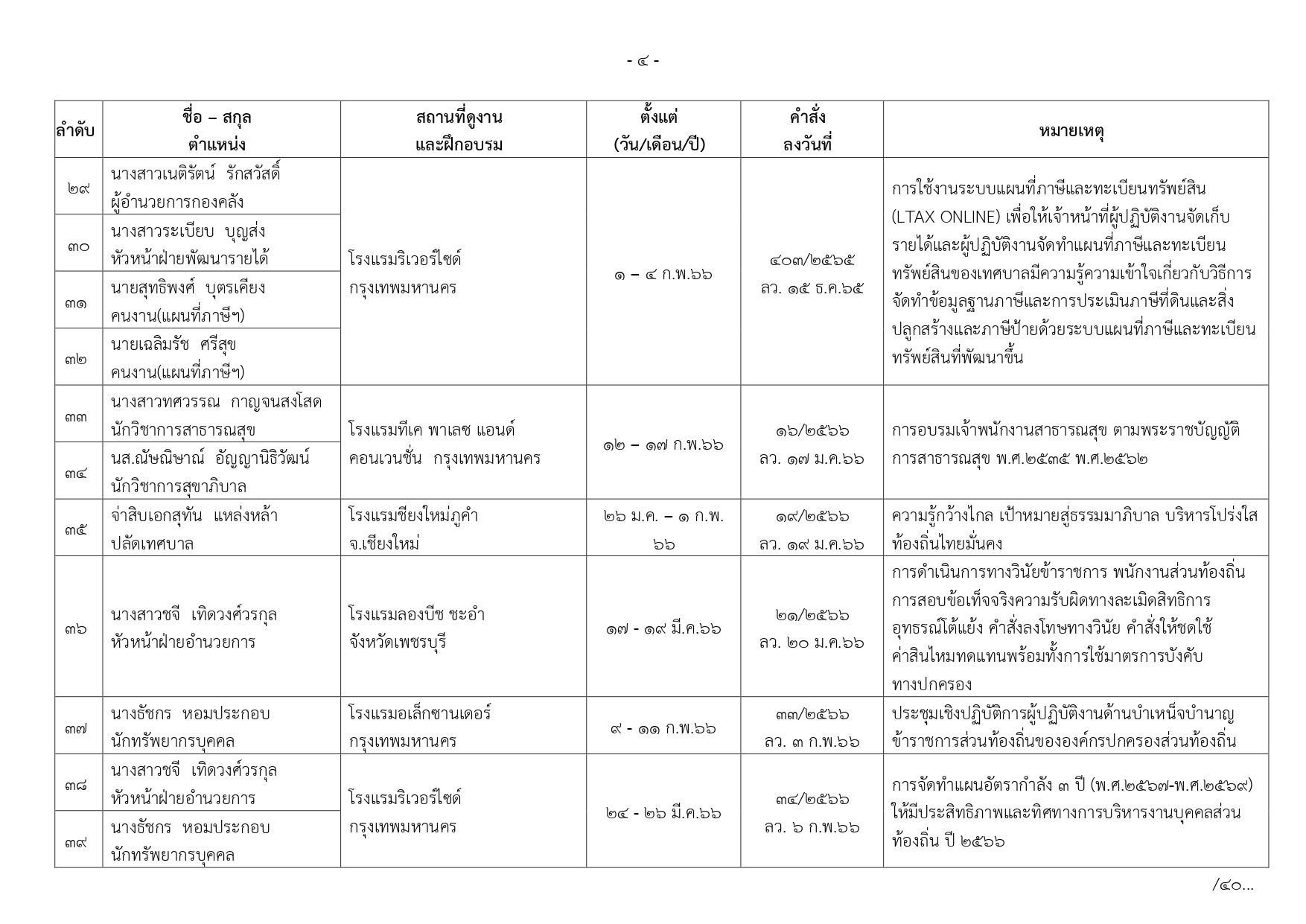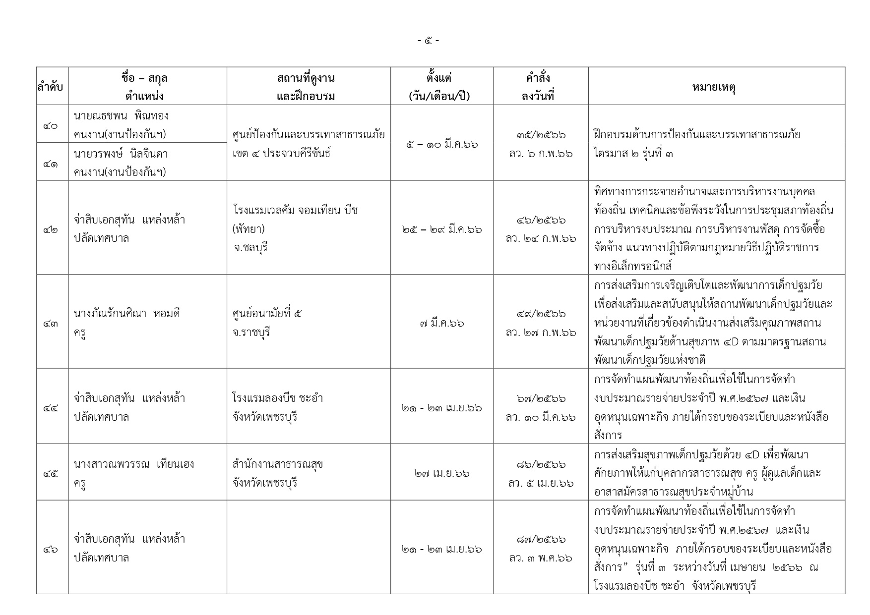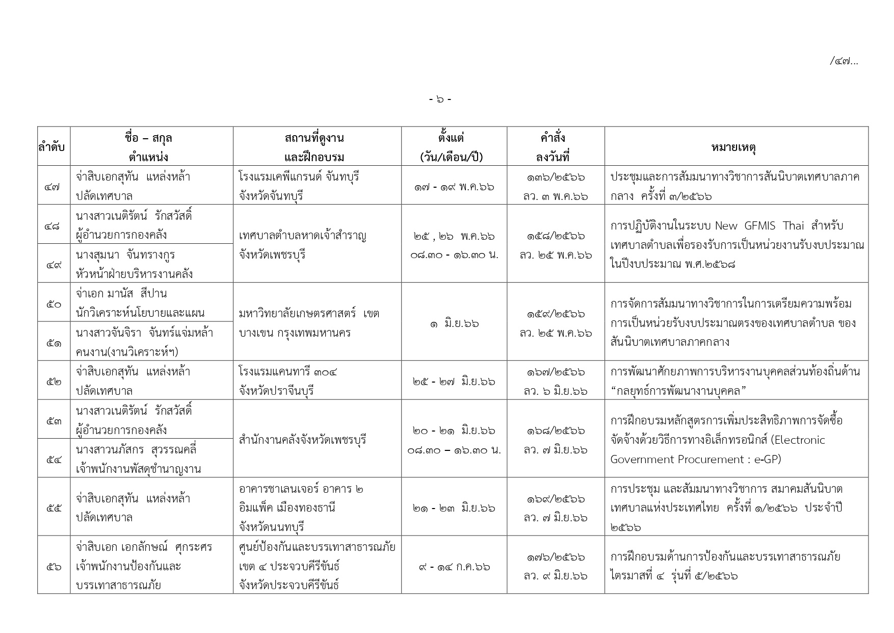 ทะเบียนการศึกษาและอบรมดูงาน ประจำปี2566 เทศบาลตำบลเขาย้อย
