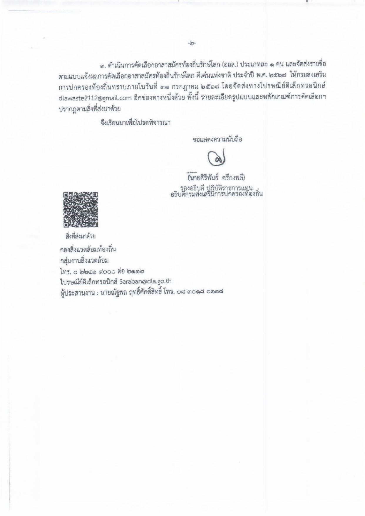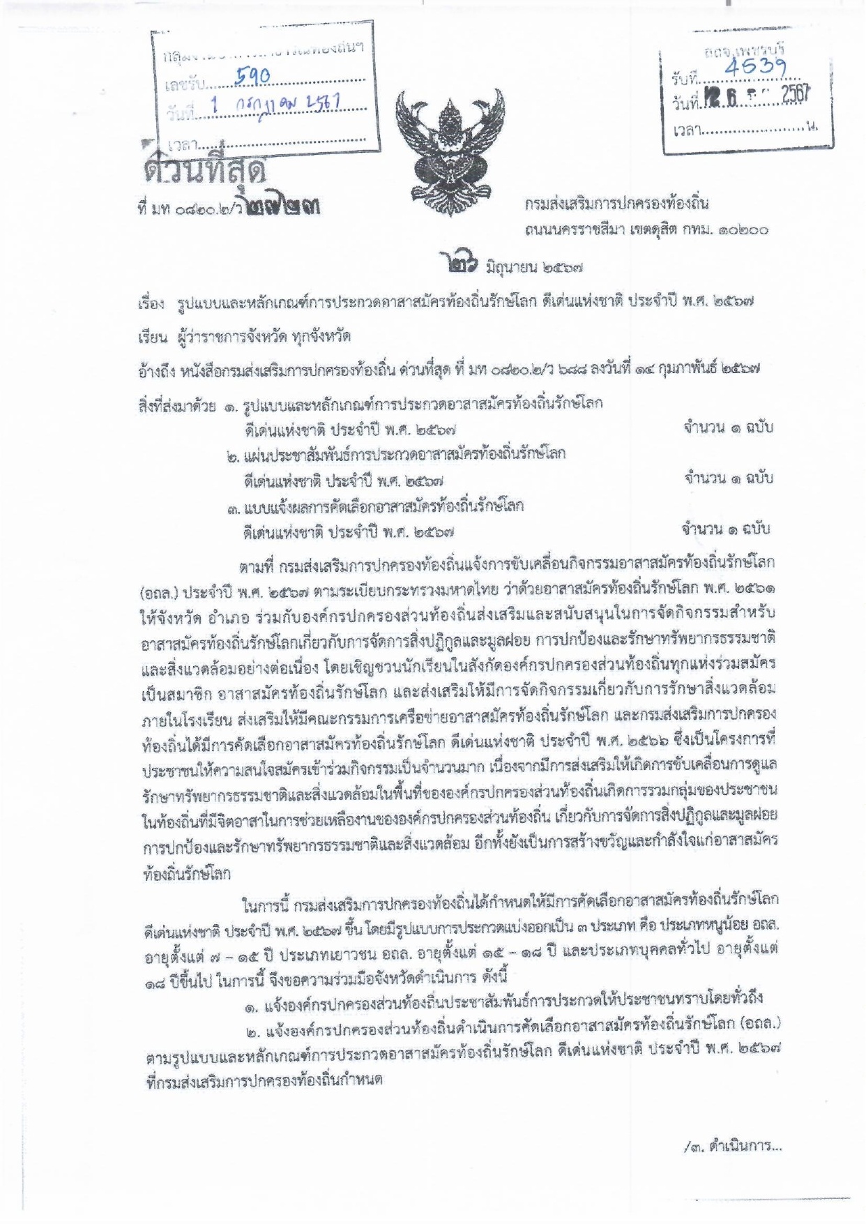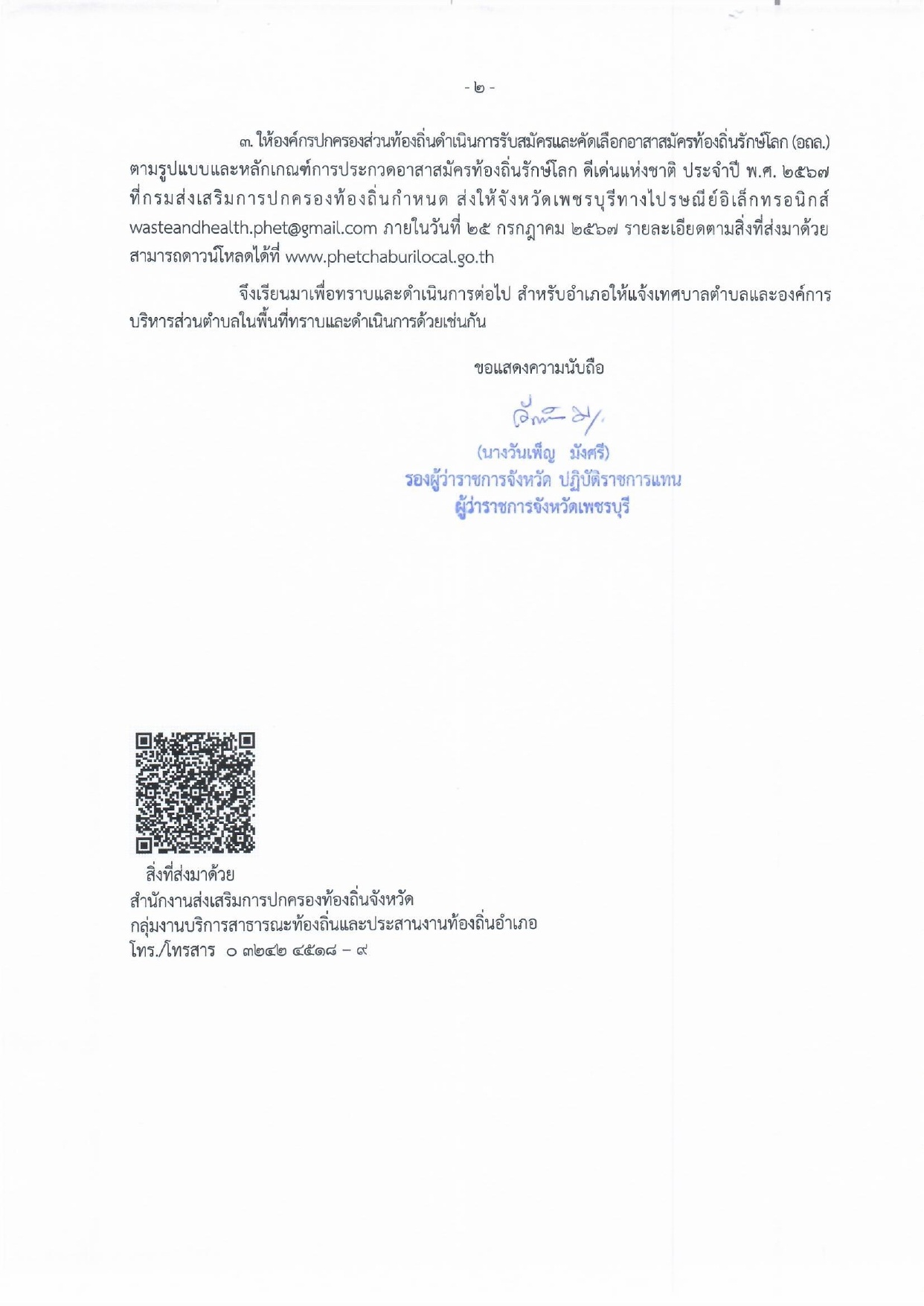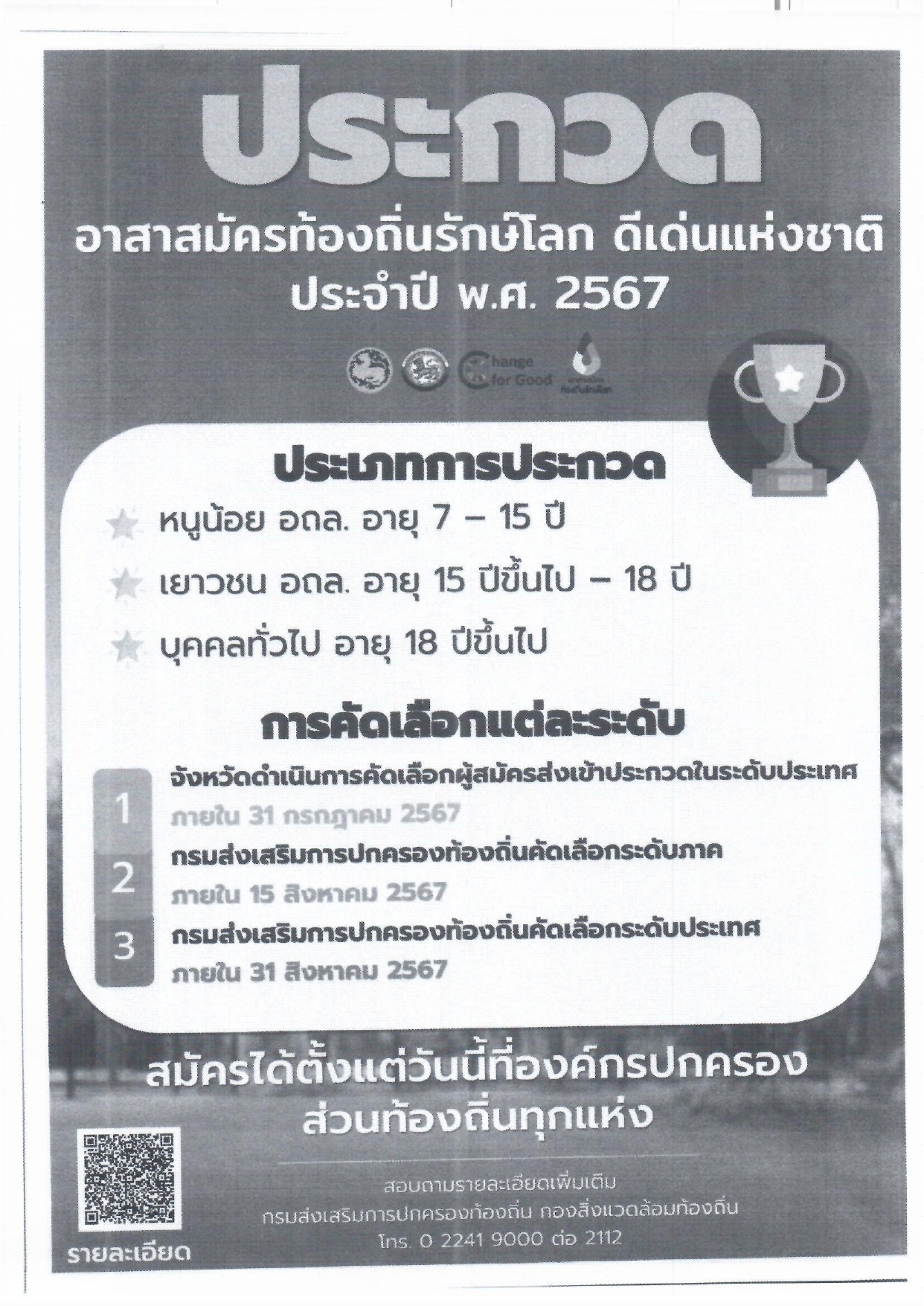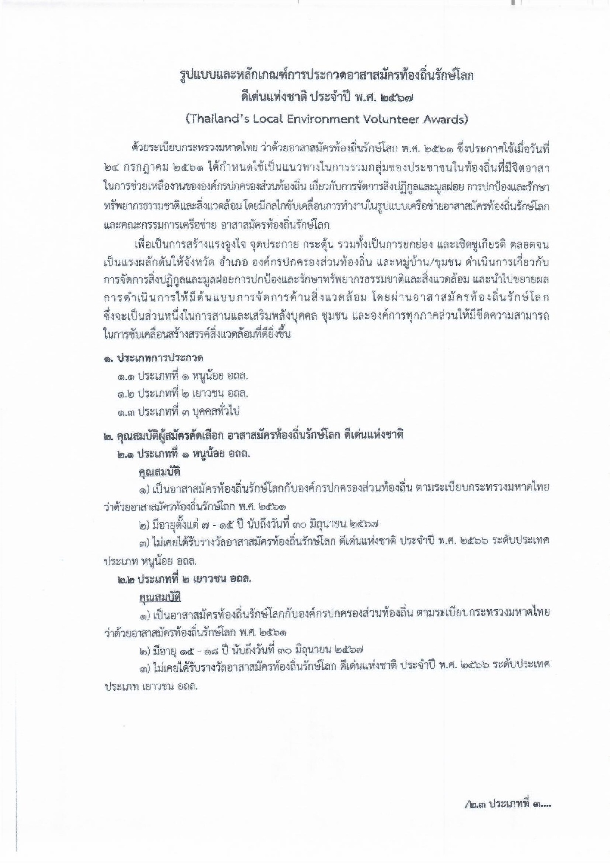 ข่าวประชาสัมพันธ์จากศาลากลางจังหวัดเพชรบุรี เรื่อง รูปแบบและหลักเกณฑ์การประกวดอาสาสมัครท้องถิ่นรักษ์โลก ดีเด่นแห่งชาติ ประจำปี พ.ศ. 2567
