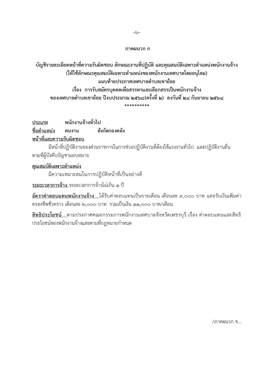ประกาศเทศบาลตำบลเขาย้อย เรื่อง การรับสมัครบุคคลเพื่อสรรหาและเลือกสรรเป็นพนักงานจ้าง ของเทศบาลตำบลเขาย้อย ประจำปีงบประมาณ 2568 (ครั้งที่ 2)