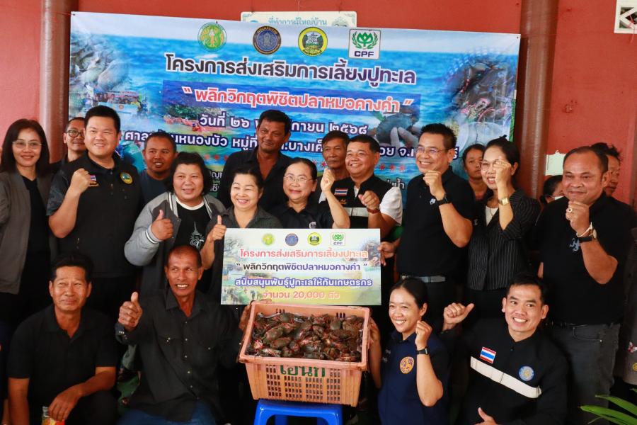 วันพุธที่ 26 พฤศจิกายน พ.ศ. 2568 เวลา 10.00 น. นายเนติ ศิริชัย นายกเทศมนตรีตำบลเขาย้อย พร้อมด้วยคณะทำงานสนับสนุนการขับเคลื่อนยุทธศาสตร์ฯ รองปลัดเทศบาล เข้าร่วมพิธีเปิดโครงการส่งเสริมการเลี้ยงปูทะเล "พลิกวิกฤตพิชิตปลาหมอคางดำ" โดยได้รับเกียรติจากนางวันเพ็ญ มังศรี รองผู้ว่าราชการจังหวัดเพชรบุรี เป็นประธานกล่าวเปิดโครงการดังกล่าว ณ ศาลาบ้านหนองบัว หมู่ 3 ตำบลบางเค็ม อำเภอเขาย้อย จังหวัดเพชรบุรี โดยในโครงการมีการแจกลูกพันธุ์ปูทะเลให้กับเกษตรกรในพื้นที่ เพื่อแก้ไขปัญหาการแพร่ระบาดของปลาหมอคางดำในแหล่งน้ำ ส่งเสริมอาชีพ และสร้างรายได้ให้กับเกษตรกร และชาวประมง