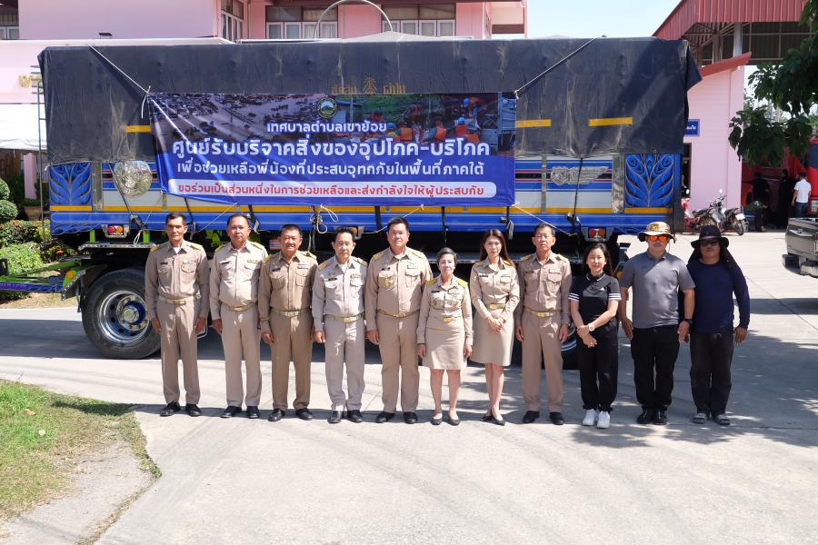 ออกเดินทางสู่พื้นที่อุทกภัย นำส่งสิ่งของอุปโภค-บริโภค สู่มือพี่น้องชาวใต้ เทศบาลตำบลเขาย้อย นำโดยท่านนายกเนติ ศิริชัย พร้อมคณะผู้บริหาร สมาชิกสภา คณะทำงานสนับสนุนการขับเคลื่อนยุทธศาสตร์ และพนักงานเทศบาล นำส่งสิ่งของอุปโภค-บริโภค และธารน้ำใจจากพ่อแม่พี่น้องประชาชนในพื้นที่เขาย้อย เพื่อส่งไปยังพื้นที่ประสบอุทกภัยทางภาคใต้ เทศบาลตำบลเขาย้อย ขอขอบพระคุณพ่อแม่พี่น้องประชาชนทุกท่าน ที่ได้ร่วมบริจาคสิ่งของจำเป็นสำหรับอุปโภค-บริโภค แก่ผู้ประสบภัยทางภาคใต้