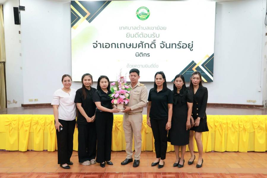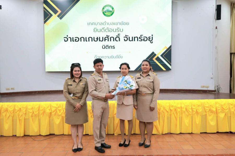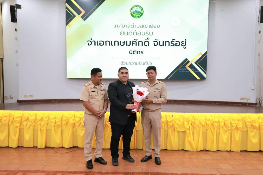 วันจันทร์ที่ 2 กุมภาพันธ์ พ.ศ.2569 เวลา 10.00 น. เทศบาลตำบลเขาย้อยจัดการต้อนรับคณะที่มาร่วมส่ง จ่าเอกเกษมศักดิ์ จันทร์อยู่ ข้าราชการที่โอนย้ายมาดำรงตำแหน่ง "นิติกร ปฏิบัติการ" สังกัดเทศบาลตำบลเขาย้อย โดยมีนายเนติ ศิริชัย นายกเทศมนตรีตำบลเขาย้อย พร้อมด้วยคณะผู้บริหาร ที่ปรึกษานายกเทศมนตรีฯ ประธานสภาเทศบาล สมาชิกสภาเทศบาล คณะทำงานสนับสนุนการขับเคลื่อนยุทธศาสตร์ฯ ปลัดเทศบาล รองปลัดเทศบาล และหัวหน้าส่วนราชการ ร่วมให้การต้อนรับพร้อมแสดงความยินดีกับผู้ที่โอนย้ายมาสังกัดเทศบาลตำบลเขาย้อย โดยจัดการต้อนรับ ณ ศาลาประชาคมเทศบาลตำบลเขาย้อย