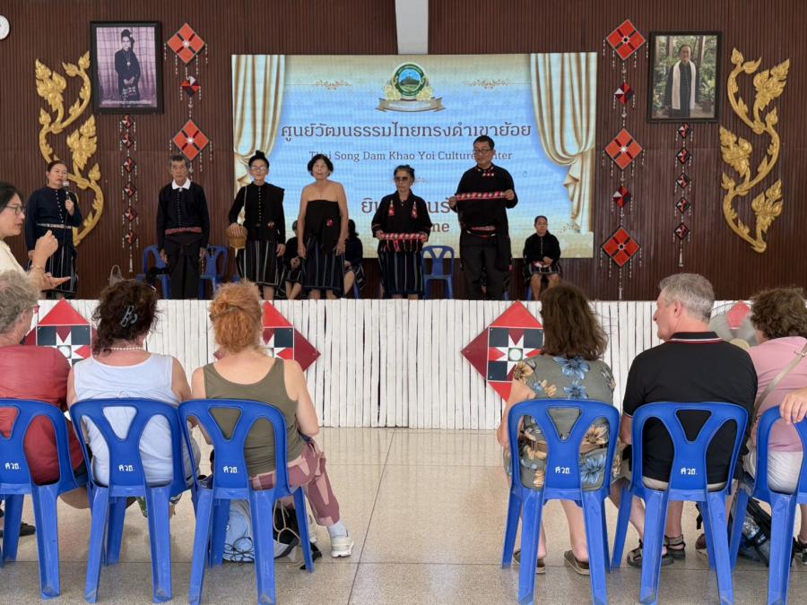 วันพฤหัสบดีที่ 19 กุมภาพันธ์ พ.ศ.2569 เวลา 12.30 น. เจ้าหน้าที่ศูนย์วัฒนธรรมไทยทรงดำเขาย้อย พร้อมกับวิทยากรภูมิปัญญาท้องถิ่นไทยทรงดำ ร่วมต้อนรับคณะศึกษาดูงานชาวต่างชาติ ที่เดินทางมาศึกษาดูงานวิถีชีวิตไทยทรงดำ ณ ศูนย์วัฒนธรรมไทยทรงดำเขาย้อย
