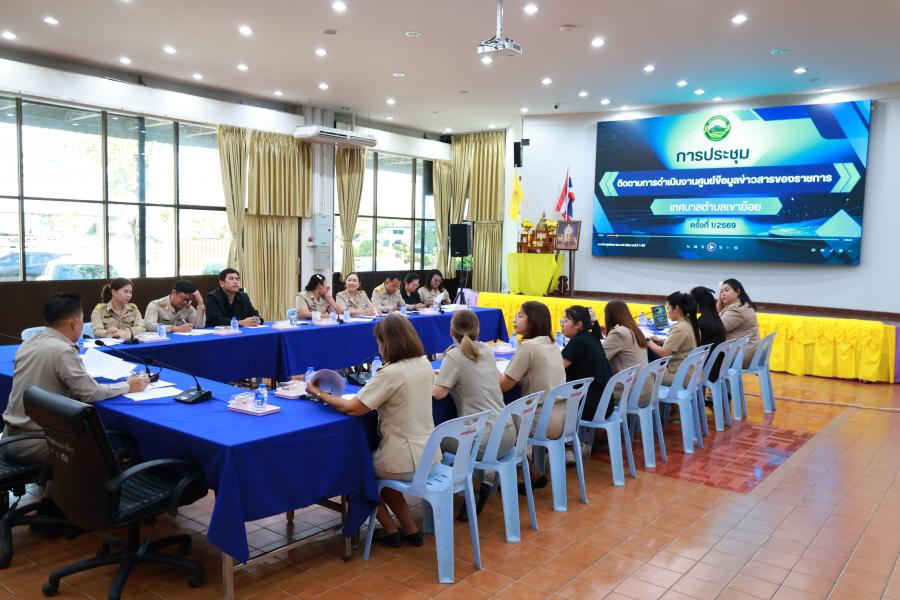 วันจันทร์ที่ 23 กุมภาพันธ์ พ.ศ.2569 เวลา 09.30 น. เทศบาลตำบลเขาย้อย จัดการประชุมติดตามการดำเนินงานศูนย์ข้อมูลข่าวสารของราชการเทศบาลตำบลเขาย้อย ครั้งที่ 1/2569 โดยมีนายเนติ ศิริชัย นายกเทศมนตรีตำบลเขาย้อย เป็นประธานในที่ประชุม พร้อมด้วยนายพนม เชื่อมชิต รองนายกเทศมนตรีฯ หัวหน้าส่วนราชการ และเจ้าหน้าที่เทศบาลตำบลเขาย้อย เข้าร่วมการประชุมดังกล่าว ณ ห้องประชุมศาลาประชาคมเทศบาลตำบลเขาย้อย