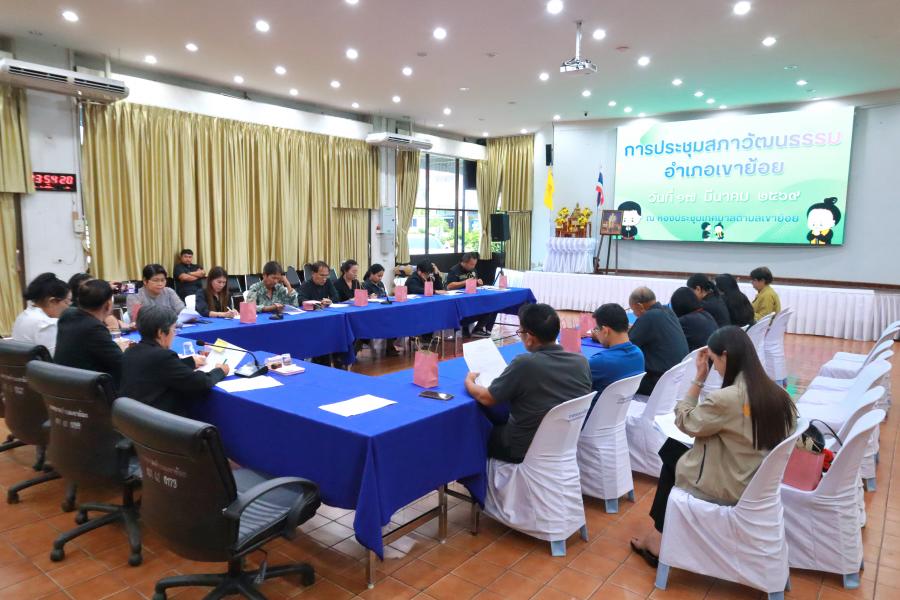 วันอังคารที่ 17 มีนาคม พ.ศ. 2569 เวลา 13.30 น. นางอรอนงค์ ศิริชัย ประธานสภาวัฒนธรรมอำเภอเขาย้อย เป็นประธานในที่ประชุมสภาวัฒนธรรมอำเภอเขาย้อย ครั้งที่ 1/2569 ณ ห้องประชุมเทศบาลตำบลเขาย้อย