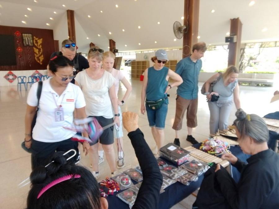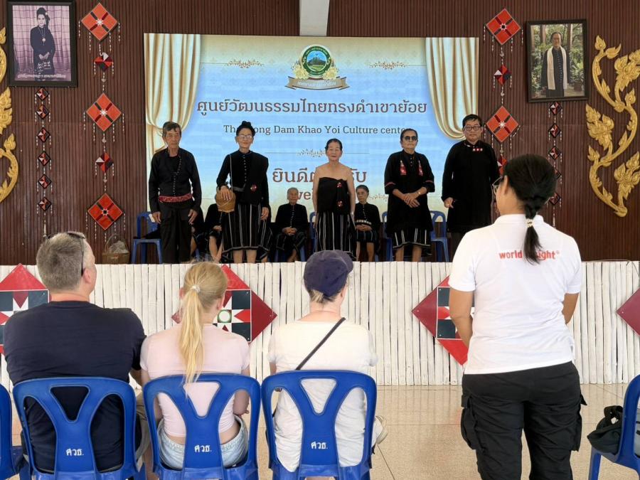 วันพฤหัสบดีที่ 2 เมษายน พ.ศ. 2569 เวลา 12.00 น. เจ้าหน้าที่ศูนย์วัฒนธรรมไทยทรงดำเขาย้อย พร้อมกับวิทยากรภูมิปัญญาท้องถิ่นไทยทรงดำ ร่วมต้อนรับคณะศึกษาดูงานต่างชาติ ที่เดินทางมาศึกษาดูงานวิถีชีวิตไทยทรงดำ ณ ศูนย์วัฒนธรรมไทยทรงดำเขาย้อย