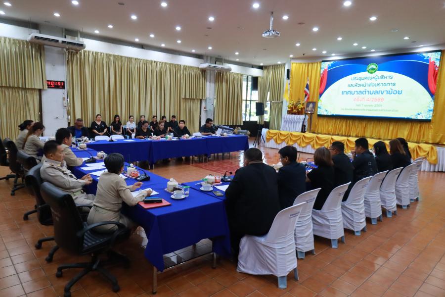 วันอังคารที่ 7 เมษายน พ.ศ. 2569 เวลา 13.30 น. เทศบาลตำบลเขาย้อยจัดการประชุมคณะผู้บริหารและหัวหน้าส่วนราชการเทศบาลตำบลเขาย้อย ครั้งที่ 4/2569 โดยมีนายเนติ ศิริชัย นายกเทศมนตรีตำบลเขาย้อย เป็นประธานในที่ประชุม พร้อมด้วยคณะผู้บริหาร ที่ปรึกษานายกเทศมนตรีฯ เลขานุการนายกเทศมนตรีฯ ปลัดเทศบาล รองปลัดเทศบาล คณะทำงานสนับสนุนการขับเคลื่อนยุทธศาสตร์ฯ และหัวหน้าส่วนราชการ เข้าร่วมการประชุมดังกล่าว ณ ห้องประชุมศาลาประชาคมเทศบาลตำบลเขาย้อย