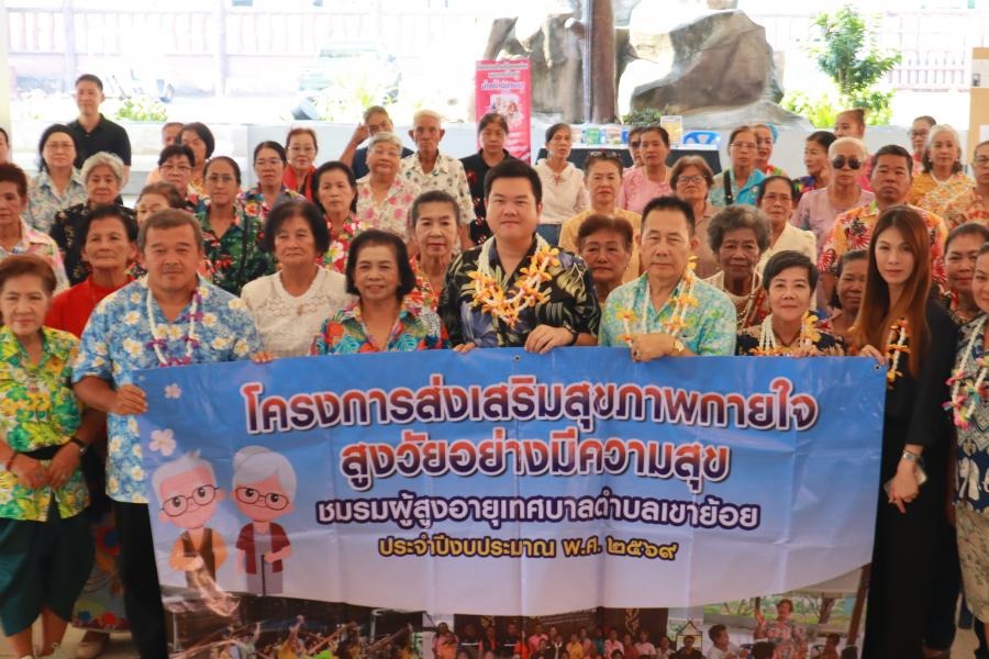 วันพุธที่ 8 เมษายน พ.ศ.2569 เวลา 09.00 น. นายเนติ ศิริชัย นายกเทศมนตรีตำบลเขาย้อย พร้อมด้วยคณะผู้บริหาร ที่ปรึกษานายกเทศมนตรีฯ เลขานุการนายกเทศมนตรีฯ สมาชิกสภาเทศบาล รองปลัดเทศบาล คณะทำงานสนับสนุนการขับเคลื่อนยุทธศาสตร์ฯ กองสวัสดิการสังคม ร่วมกิจกรรมสรงน้ำพระพุทธรูป และรดน้ำขอพรผู้สูงอายุ โครงการส่งเสริมสุขภาพกายใจ สูงวัยอย่างมีความสุข ชมรมผู้สูงอายุเทศบาลตำบลเขาย้อย ประจำปีงบประมาณ 2569 ณ ศูนย์วัฒนธรรมไทยทรงดำเขาย้อย