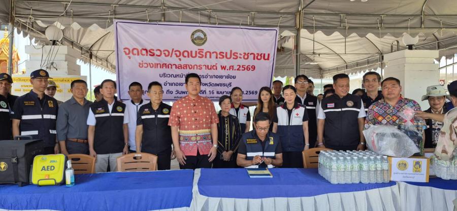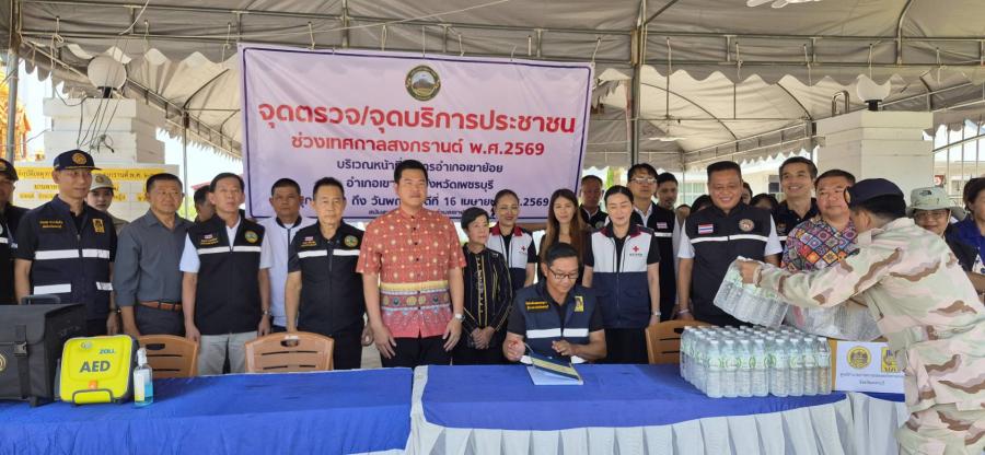 วันศุกร์ที่ 10 เมษายน พ.ศ.2569 เทศบาลตำบลเขาย้อย นำโดยนายเนติ ศิริชัย นายกเทศมนตรีตำบลเขาย้อย พร้อมด้วยคณะผู้บริหาร ที่ปรึกษานายกเทศมนตรีฯ สมาชิกสภาเทศบาล คณะทำงานสนับสนุนการขับเคลื่อนยุทธศาสตร์ฯ และเจ้าหน้าที่เทศบาลตำบลเขาย้อย ร่วมให้การต้อนรับ ร้อยตำรวจโท ภพชนก ชลานุเคราะห์ ผู้ว่าราชการจังหวัดเพชรบุรี และคณะ ที่ลงพื้นที่ตรวจเยี่ยมจุดตรวจและจุดบริการประชาชนช่วงเทศกาลสงกรานต์ 2569 ณ บริเวณหน้าที่ว่าการอำเภอเขาย้อย จังหวัดเพชรบุรี