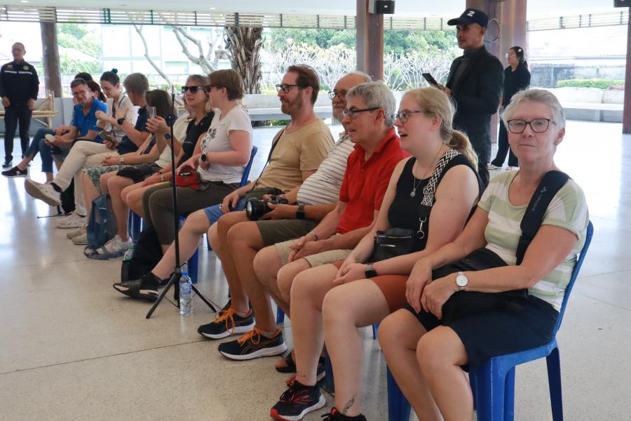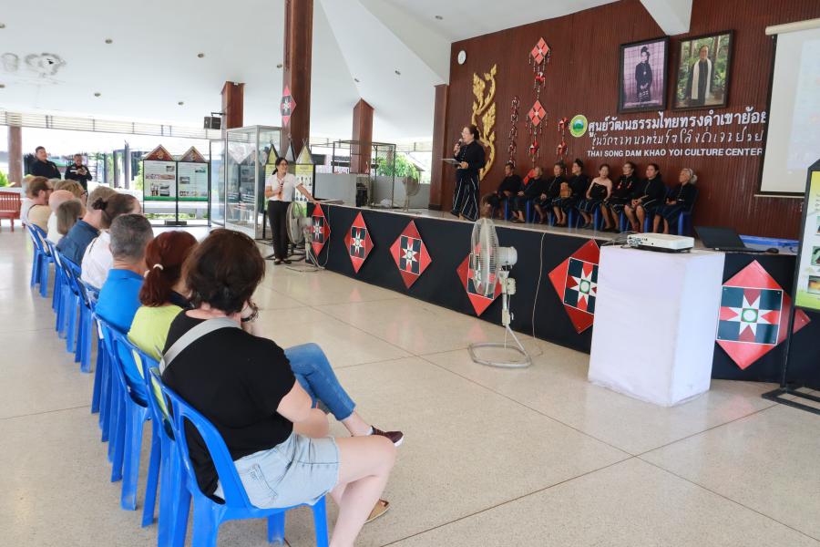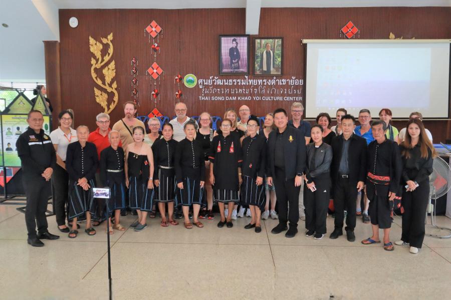 วันพฤหัสบดีที่ 13 พฤศจิกายน พ.ศ.2568 เวลา 12.30 น. นายเนติ ศิริชัย นายกเทศมนตรีตำบลเขาย้อย พร้อมด้วยคณะผู้บริหาร คณะทำงานสนับสนุนการขับเคลื่อนยุทธศาสตร์ฯ เจ้าหน้าที่ศูนย์วัฒนธรรมไทยทรงดำเขาย้อย และวิทยากรภูมิปัญญาท้องถิ่นไทยทรงดำ ร่วมให้การต้อนรับคณะนักท่องเที่ยวชาวต่างชาติ ที่เดินทางมาศึกษาดูงานวิถีชีวิตไทยทรงดำ ณ ศูนย์วัฒนธรรมไทยทรงดำเขาย้อย