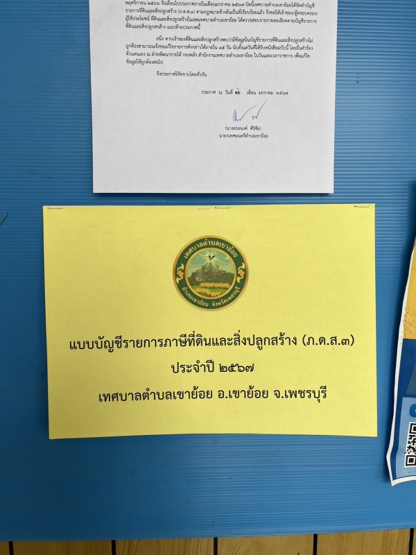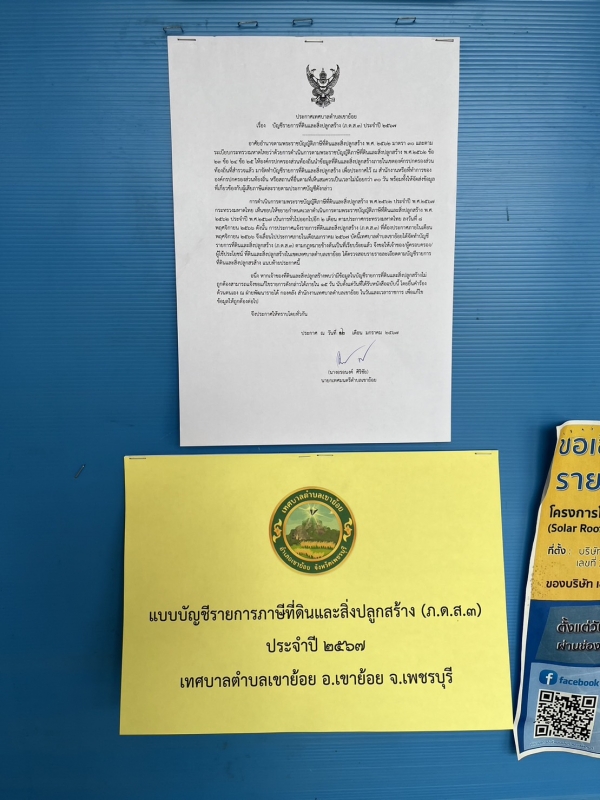 ประกาศเทศบาลตำบลเขาย้อย เรื่อง บัญชีรายการภาษีที่ดินและสิ่งปลูกสร้าง (ภ.ด.ส3) ประจำปี 2567