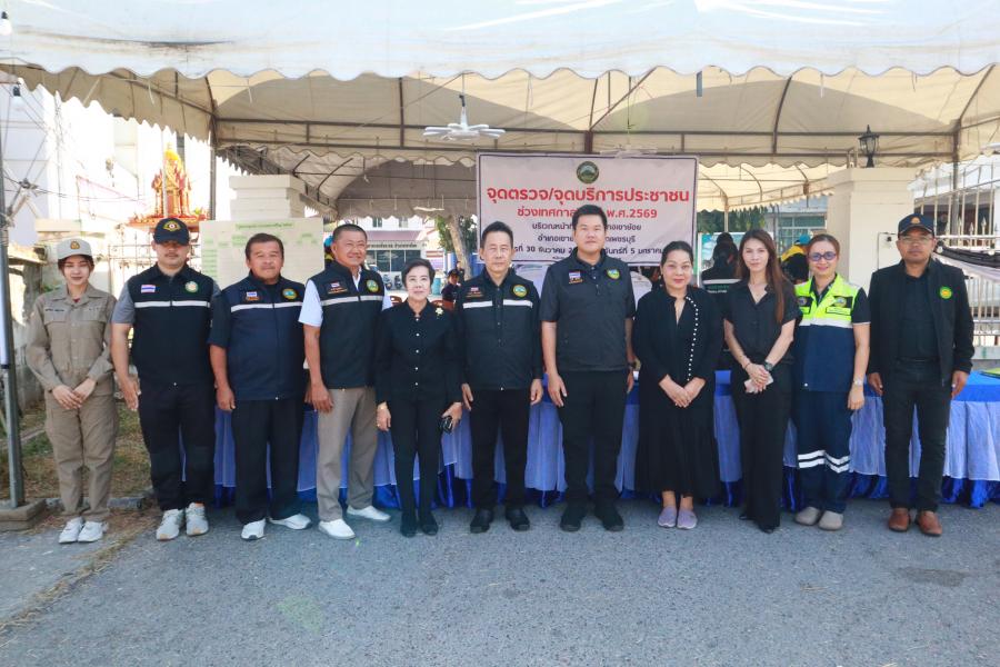 ร้อยตำรวจโท ภพชนก ชลานุเคราะห์ ผู้ว่าราชการจังหวัดเพชรบุรี และคณะ ที่ลงพื้นที่ตรวจเยี่ยมจุดตรวจและจุดบริการประชาชนช่วงเทศกาลปีใหม่ 2569 ณ บริเวณหน้าที่ว่าการอำเภอเขาย้อย จังหวัดเพชรบุรี