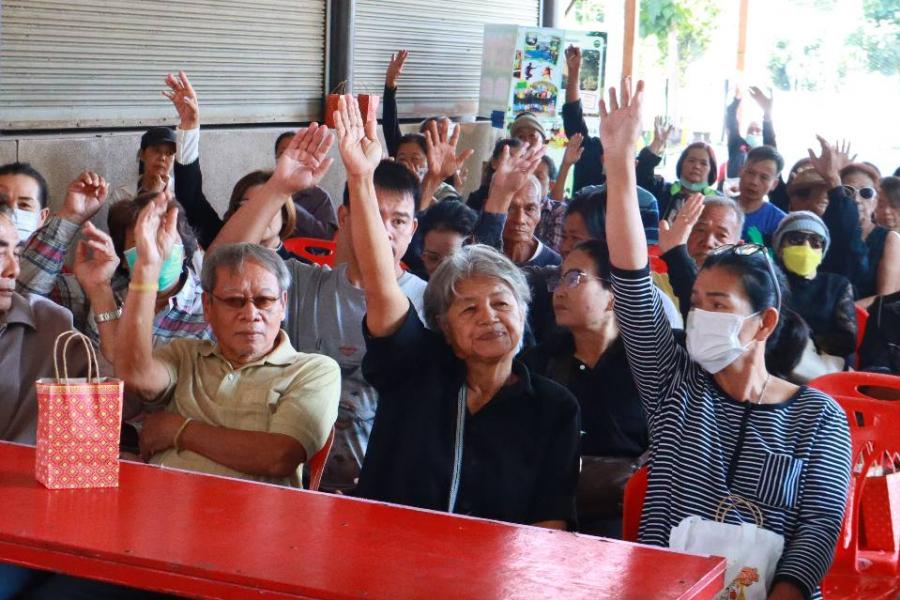 เทศบาลตำบลเขาย้อย ลงพื้นที่จัดโครงการเวทีประชาคมส่งเสริมการมีส่วนร่วมของประชาชนในการพัฒนาท้องถิ่น ณ วัดดอนทราย ชุมชนบ้านดอนทรายร่วมใจ หมู่ 1 ต.ทับคาง