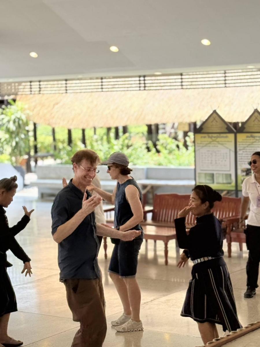 เจ้าหน้าที่ศูนย์วัฒนธรรมไทยทรงดำเขาย้อย พร้อมกับวิทยากรภูมิปัญญาท้องถิ่นไทยทรงดำ ร่วมต้อนรับคณะศึกษาดูงานต่างชาติ ที่เดินทางมาศึกษาดูงานวิถีชีวิตไทยทรงดำ ณ ศูนย์วัฒนธรรมไทยทรงดำเขาย้อย
