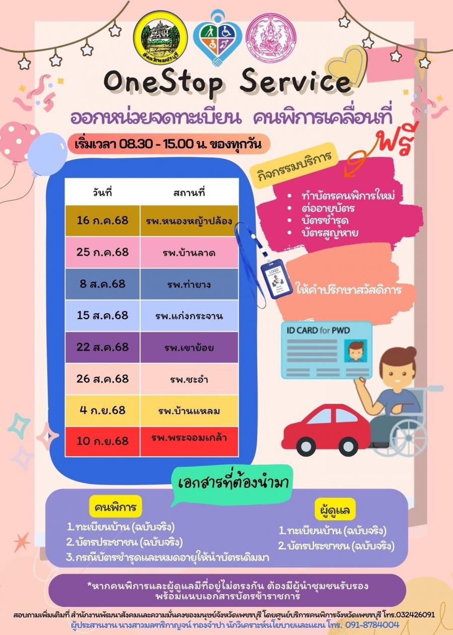 ข่าวประชาสัมพันธ์เทศบาลตำบลเขาย้อย สำนักงานพัฒนาสังคมและความมั่นคงของมนุษย์จังหวัดเพชรบุรี ขอประชาสัมพันธ์ การออกหน่วยจดทะเบียน คนพิการเคลื่อนที่ One Stop Service (OSS)