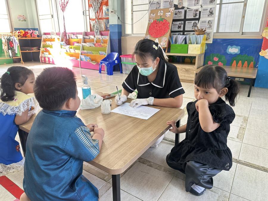 เจ้าหน้าที่โรงพยาบาลส่งเสริมสุขภาพตำบลบ้านห้วย ตำบลเขาย้อย เข้าดำเนินการตรวจช่องปากและเคลือบฟลูออไรด์ ให้กับเด็กๆ ณ ศูนย์พัฒนาเด็กเล็กวัดยาง