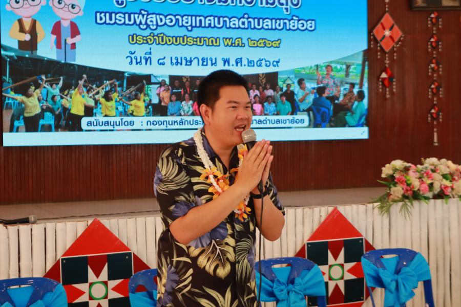ร่วมกิจกรรมสรงน้ำพระพุทธรูป และรดน้ำขอพรผู้สูงอายุ โครงการส่งเสริมสุขภาพกายใจ สูงวัยอย่างมีความสุข ชมรมผู้สูงอายุเทศบาลตำบลเขาย้อย ประจำปีงบประมาณ 2569